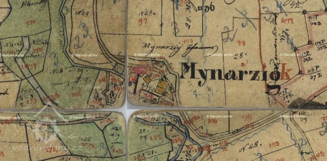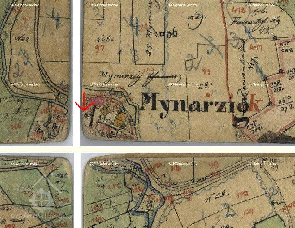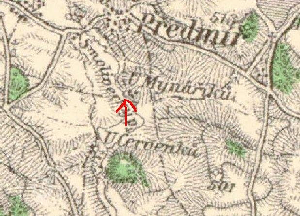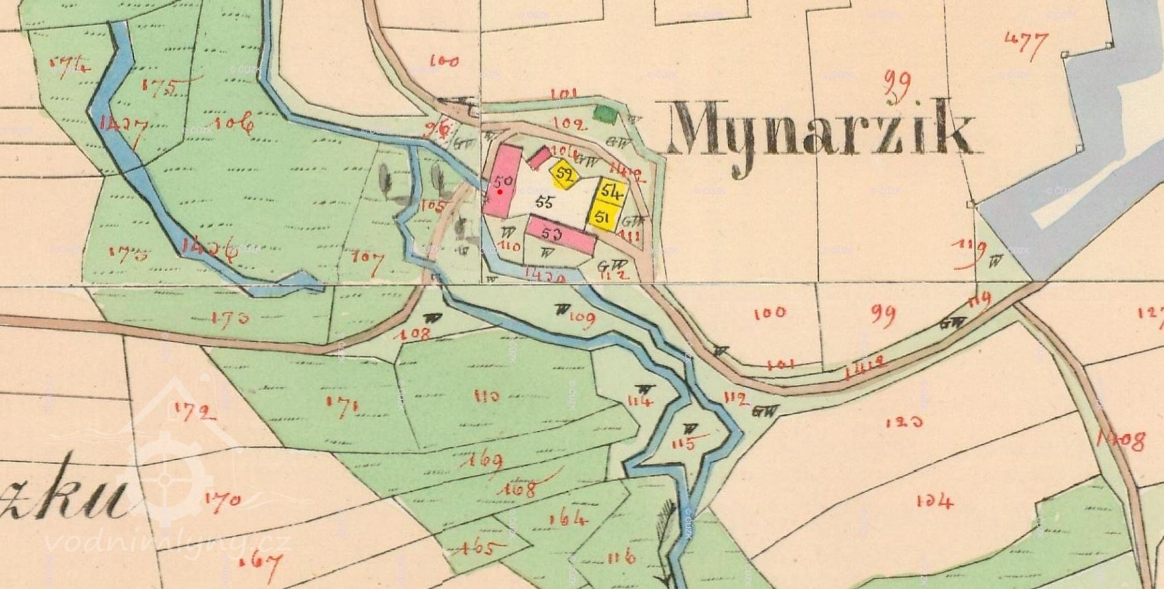 Mlýn je zakreslen na I.vojenském mapování pod názvem Schikowský a II. vojenském mapování jako Mlinařík. Na císařském otisku a indikační skice jako Mynarzyk.