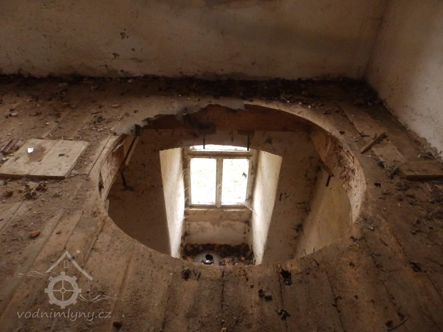 II. patro mlýnice - kruhový otvor v podlaze, 2019, © doxa