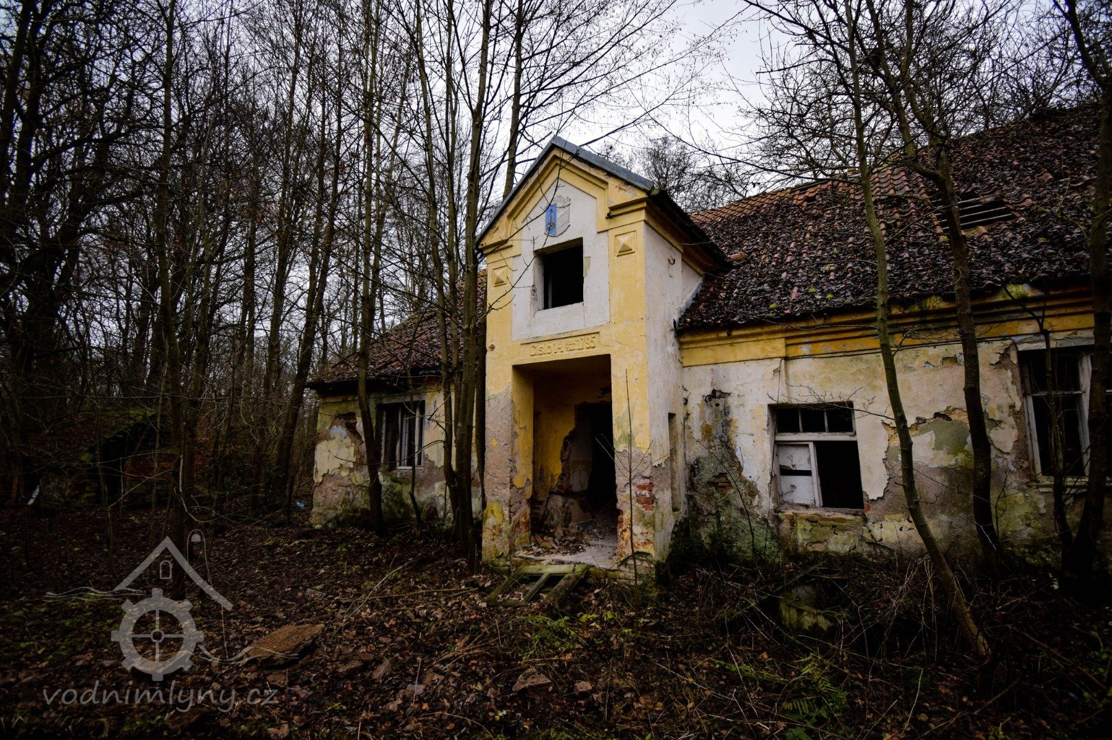 Severní průčelí mlýnice s nápisem JOSEFA ŠOLLE MLÝN NA HUTISKU (?), 2019, © doxa