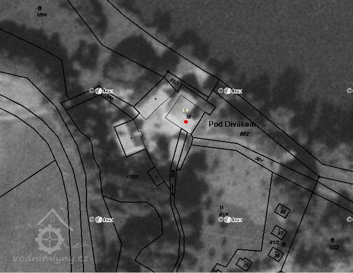 Ortofotomapa-letecký snímek, výřez, 50.léta 20.stol., © geoportal.gepro.cz