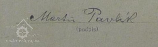 1921-Martin Pavlík *1855 Přívozec, samostatný majitel válcového mlýna s manželkou, dvěma tovaryši a služkou, česká národnost.