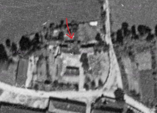 V roce 1938 je na leteckém snímku vidět budova mlýna a menší hospodářské stavení.