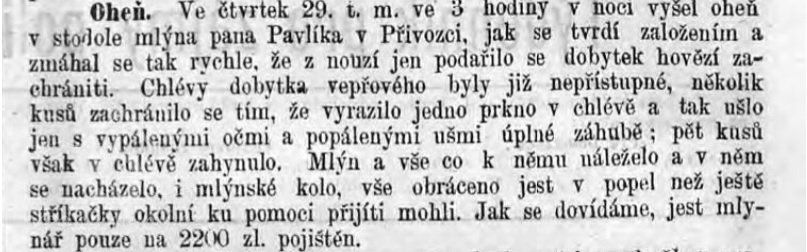roku 1873 mlýn celý vyhořel -viz. článek z Posla od Čerchova v ikonografii