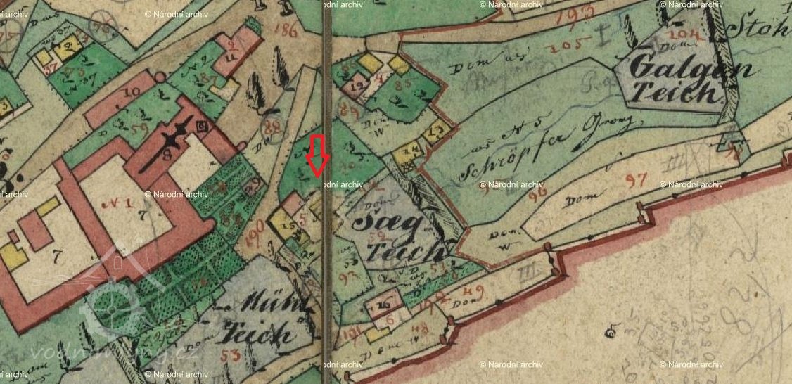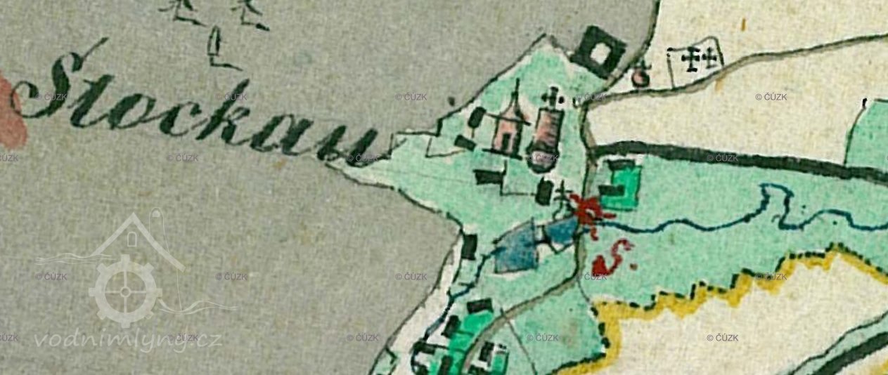 řád augustiniánů, mlýn zobrazen na I. vojenském mapování – josefském 1764-1768 a 1780-1783.