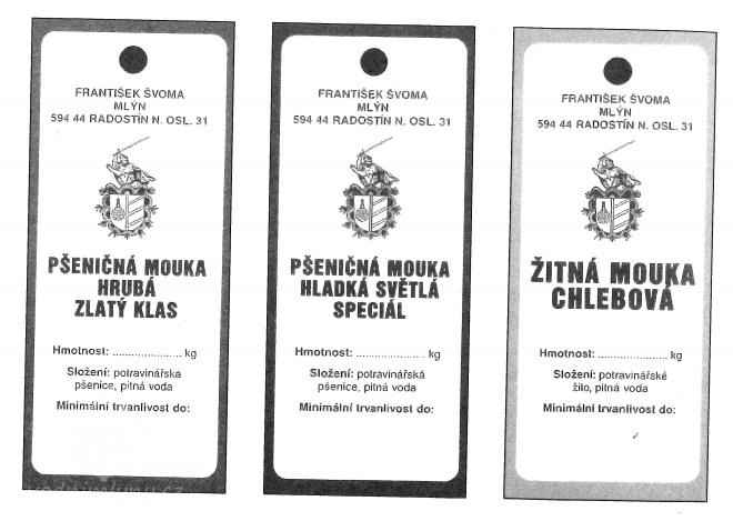 2002: 2 páry válců na mletí žita a 2 páry válců na mletí pšenice, vysévací a pytlovací zařízení, loupačka a šrotovník