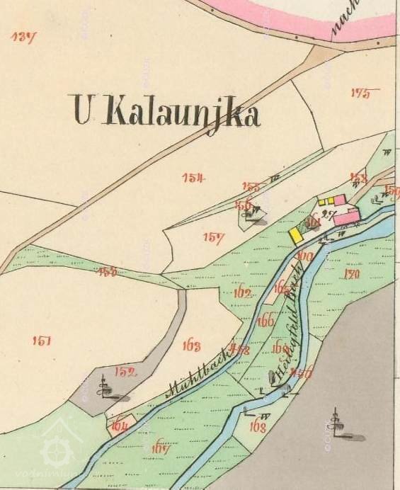 Z doby příchodu mlynáře Chýly na Kalouníkov se v rodině tradovala jedna historka: Po svém příchodu zjistil, že musí vyměnit chatrnou hřídel, která konala svou službu již drahně let před tím. Prý ji zaplatil ještě otec mlynáře Chromého. Hřídel byla dřevěná a nebyla levnou záležitostí. Proto byl jeden rok zakoupen rovný, krásný dubový kmen, který přivezl pantáta Smělý ze Staré Hutě až od Knížecích studánek, Fürstenbrunnen se říkalo. A až druhým rokem se začalo přemýšlet na jeho zhotovení. Po poradě zavolali sekerníka Jakuba Dýmáka, tesaře z čp.39 ze Staré Hutě, aby dub přeměnil v hladkou hřídel. Pondělí bylo pro Dýmáka vždy dnem odpočinku po bouřlivé neděli a tak přišel až v úterý. Za ním i jeho věrná Káča, která přinesla zbytek vercajku. Dýmák byl chlapík velký, silný a sám si vše vyměřil a dělal hravě vodní i paleční kola. Nesnášel však rady a pokyny, dělal vždy jen podle svého. Než začal dělat, vypil si svůj pulčík, přičemž si lízla i Káča. Pokud trvala Dýmákovi práce déle, zmizela vždy Káča na několik dní, záhy se však objevila a posedávala u svého Kuby, dívajíc se, jak mu jde práce od ruky. A on sám říkal, že mu jde práce líp od ruky, když je Káča s ním. Práce na hřídeli pokračovala, každý Kubu obdivoval. Až jednoho májové dne přišel na Kalouník člověk a nesl dva obrazy a rovnou šel k hřídeli, kde pan otec přihlížel Dymákově práci. Spolu i krajánek, děti a čeledín. Kousek opodál seděla Káča a zašívala Kubovu košili. Příchozí pozdravil pana otce Václava Chýlu, ukázal mu obrazy a nabízel je ke koupi. Byly to portréty císaře a císařovny. Pan otec nabídku odmítl, vymlouval se na nedostatek peněz a, že nová hřídel spolkla všechny úspory, takže si obrazy neobjedná. Ten se nedal odbýt. I tu se Kuba narovnal, koukl na obrazy a bez rozmyslu řekl: „Kdo by to kupoval, vždyť je to Kuzma a tamto Bětka Barborková“. Pan otec se lekl, vstal a chtěl odejít, ale neznámý se ostře zeptal: „Jak jste je pojmenoval?“ Kuba věděl hned, kolik uhodilo, sehnul se a dělal dál. Příchozí sebral své obrazy a s poznámkou. „Zapamatujte si, co jste řekl“ odešel. Po jeho odchodu bylo zle. Pan otec vyčítal Kubovi jeho lehkomyslnost a tušil, že bude udán. Kuzma byl tou dobou známý lapka a Bětka Barborková o nic lepší. Předtucha mlynáře Chýly se naplnila, když druhý den přišel z Dobříše žandár a Kubu odvedl. Bylo to smutné loučení. Kuba plakal a nejvíc Káča. Výslechy připravily i mlynáři mnoho nepříjemností, a Kuba? Byl odsouzen na osmnáct měsíců pro urážku Jeho veličenstva. Po odpykání trestu se Kuba vrátil zlomený, neschopný dřívější fortele. Začal pít a zanedlouho odešel za Káčou, která zemřela, když seděl.