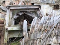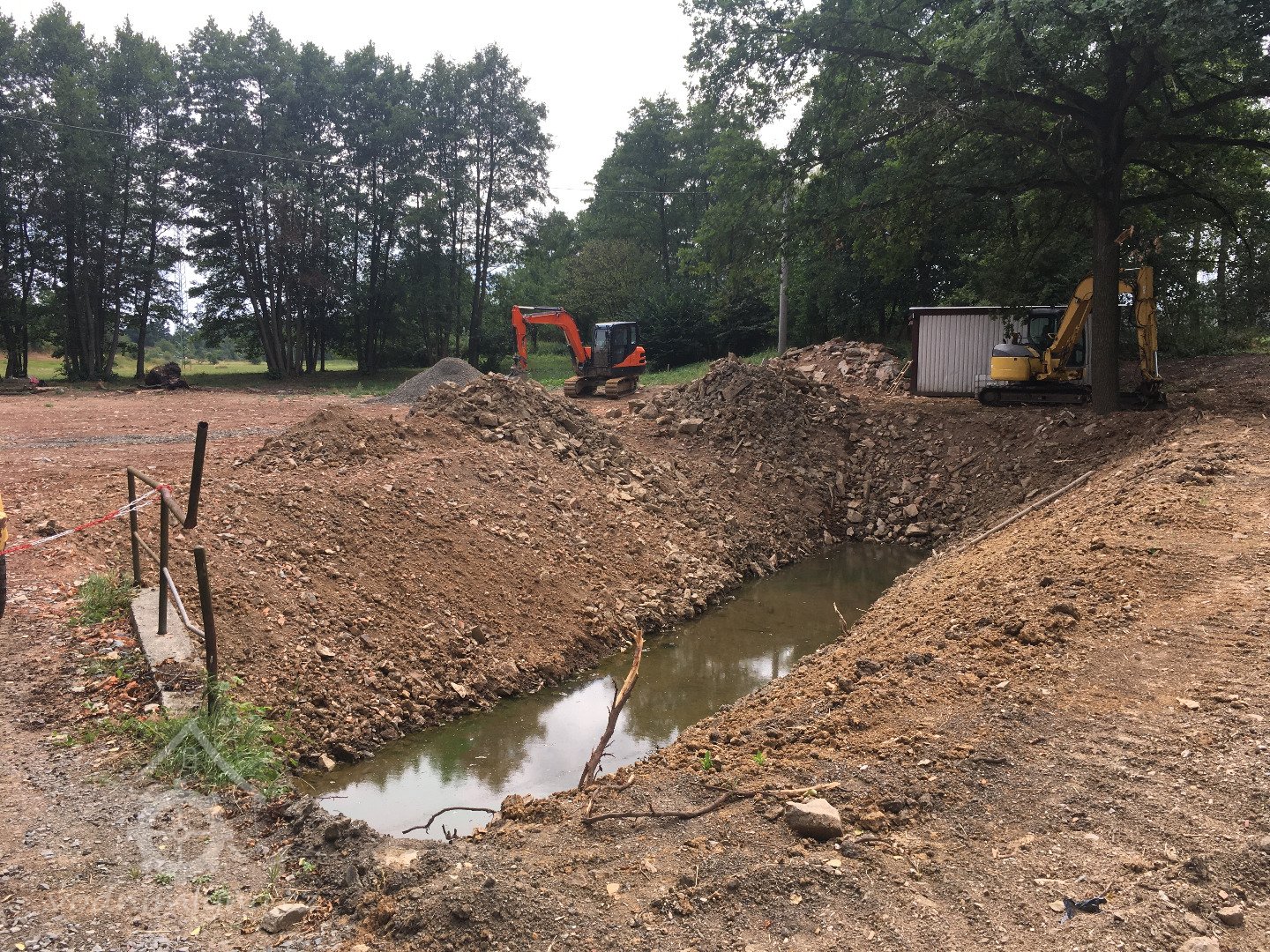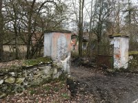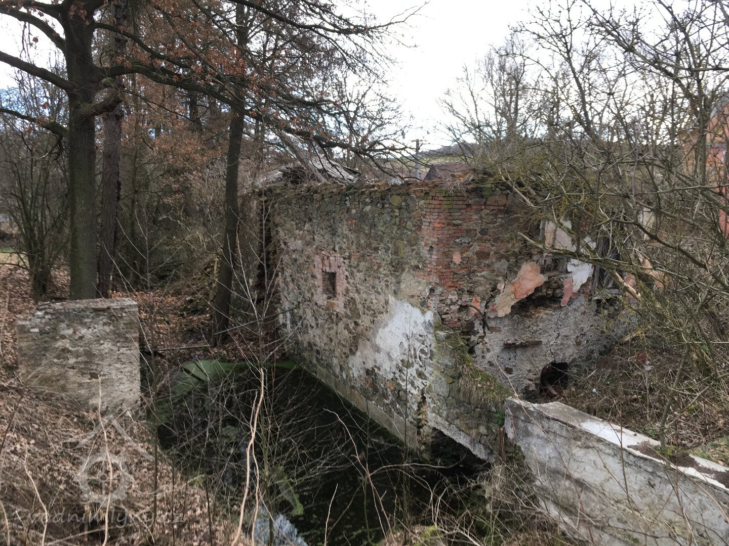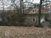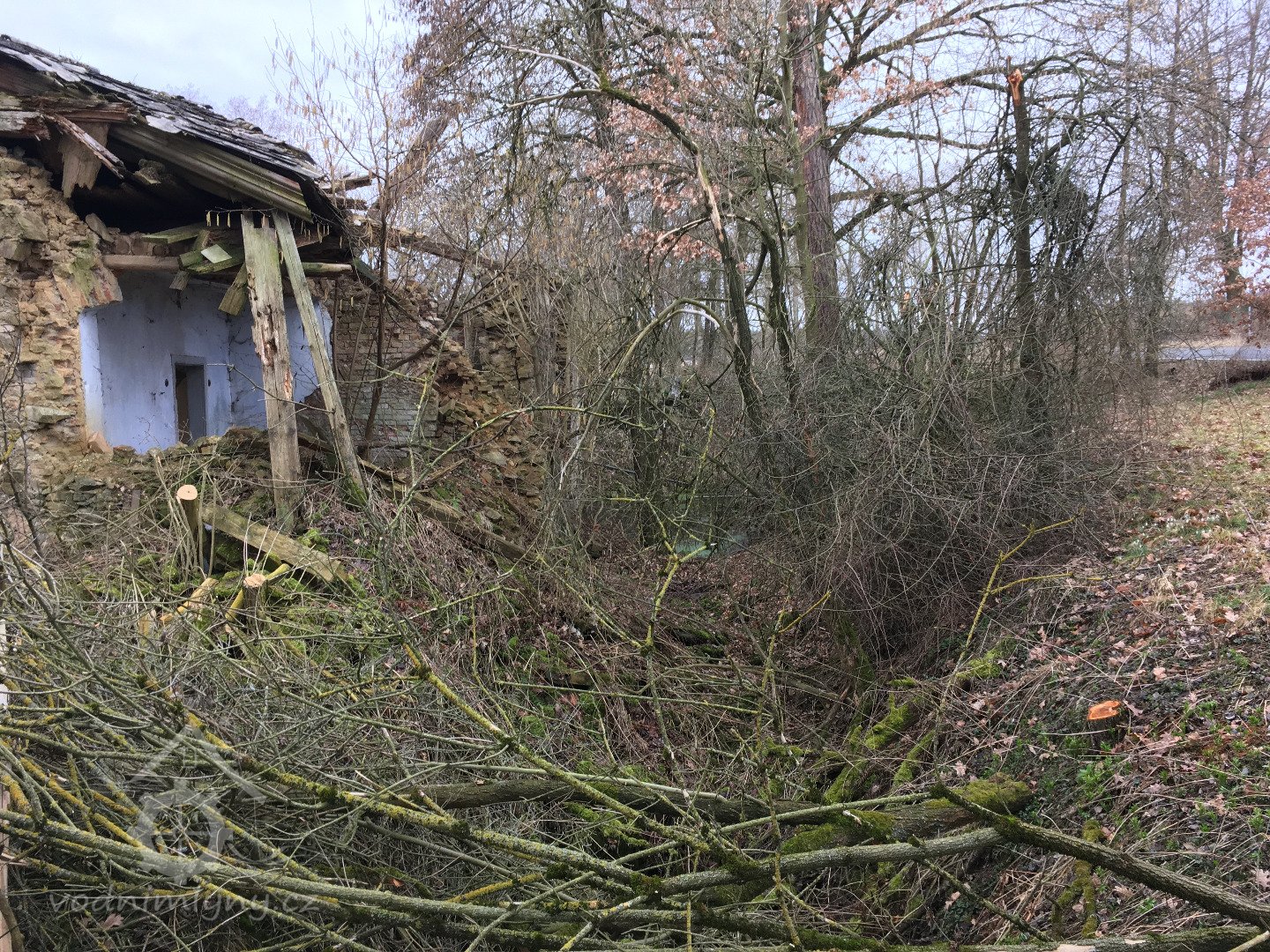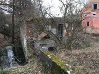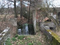 2019 - náhon ze Zahořanského potoka zakončený dnes prázdnou, ale jasně viditelnou vodní nádrží , cca. 2,5 m široké betonové vantroky, lednice, odtokový kanál zpět do potoka