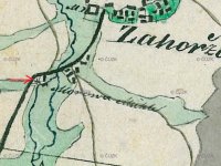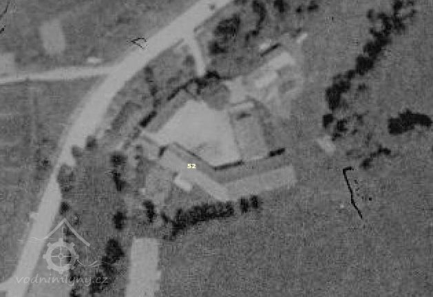 1838 – skica stabilního katastru : náhon ze Zahořanského potoka zakončený vodní nádrží , nespalná budova mlýna se 2 koly na jižní straně, vlevo menší dřevěná budova katru, vpravo obytná budova a zřejmě stodola, obě spalné. Objekty tvoří uzavřený areál tvaru trojúhelníku. Odtokový kanál zpět do potoka. Majitelem mlýna je Johann Ludvík. Na otisku jsou 2 kola zakreslena na severní straně, což odpovídá situaci postavení vantrok a náhonu podle současného stavu.