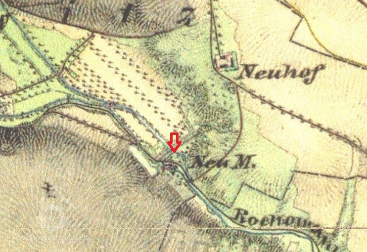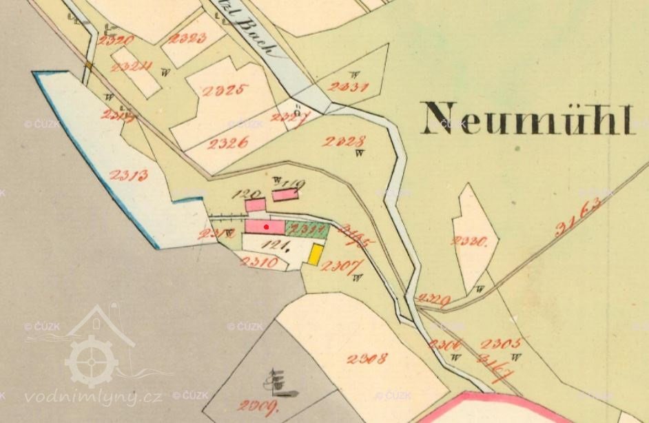 Mlýn zmiňovaný na II. vojenském mapování jako Neu Mühl. Na mapách pozemkového katastru již zmiňována Myslivna. Pravděpodobně tedy přestal sloužit svému původnímu účelu před rokem 1923.