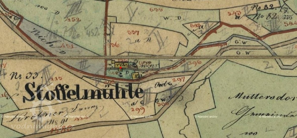 Popis1930-Bílý potok – Josef Neubauer – mlýn a pila – 2 kola na svrchní vodu – 0,068-5-2,9