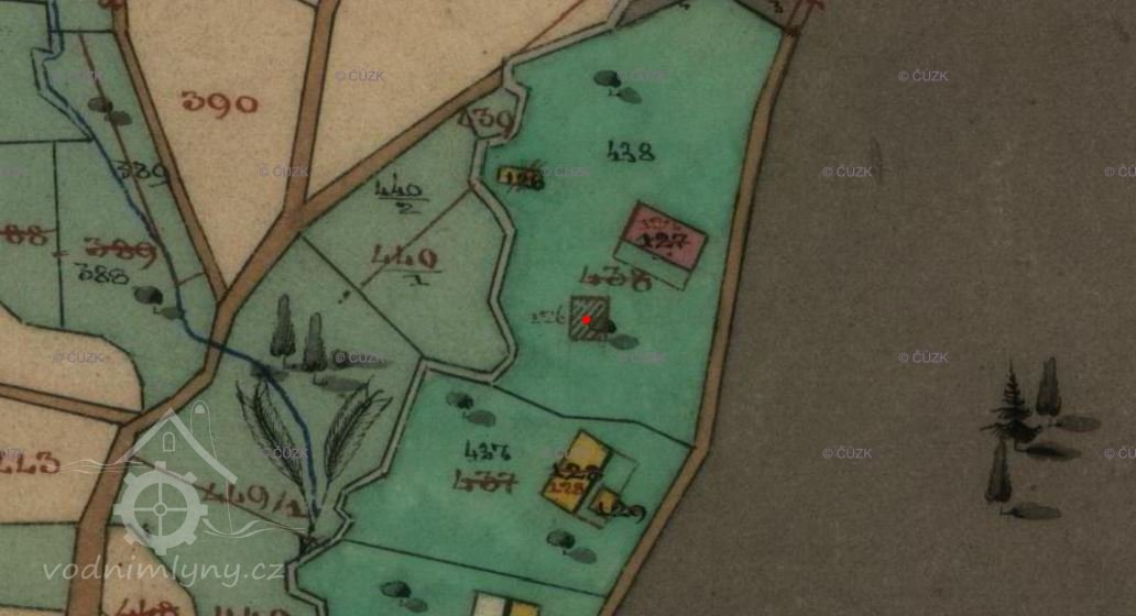 Nejvýše položený mlýn na Lučním potoce. Po 2. sv. válce zbořen spolu s celou osadou Na potoce, na konci 60. let byla na troskách postavena rekreační chata, stejně jako na okolních ruinách.
