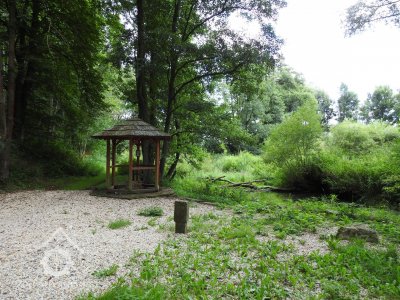 Bývalé mlýniště bylo upraveno a dvojjazyčná tabule informuje o obci a lidech, kteří zde přes staletí žili.