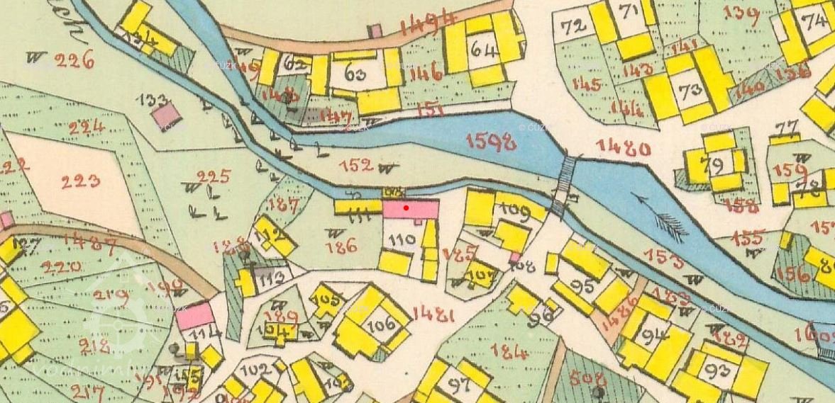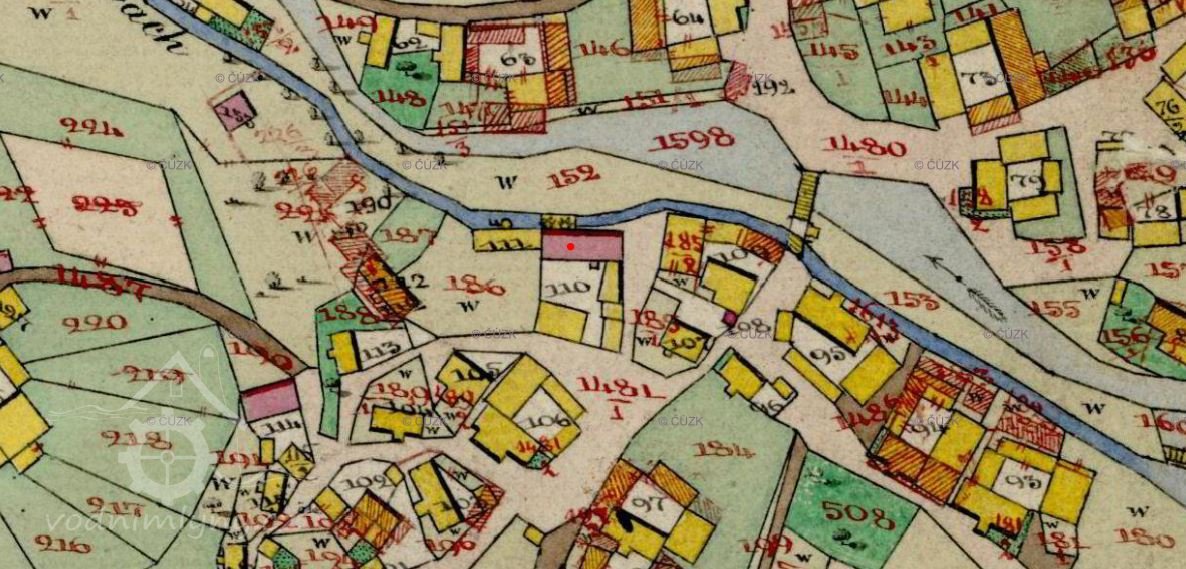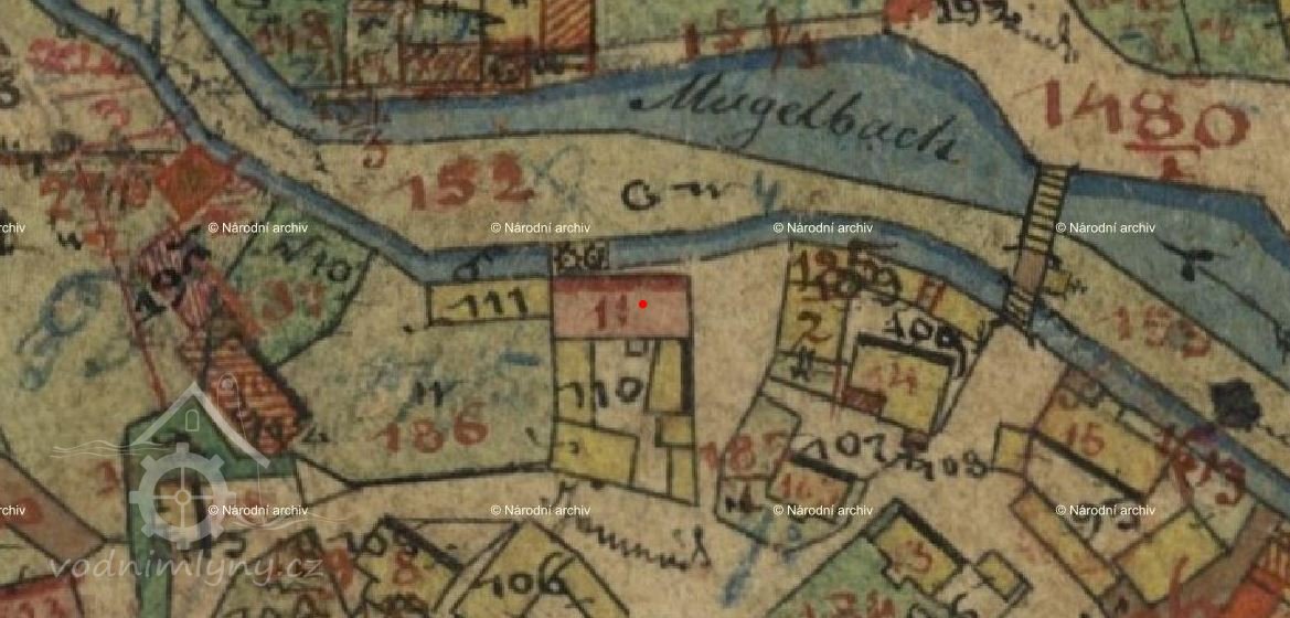 PopisV roce 1930 pohání mlýn a pilu kolo na spodní vodu s průtokem 0.35m3/s, spádem 1.8 m o výkonu 4.5 HP.