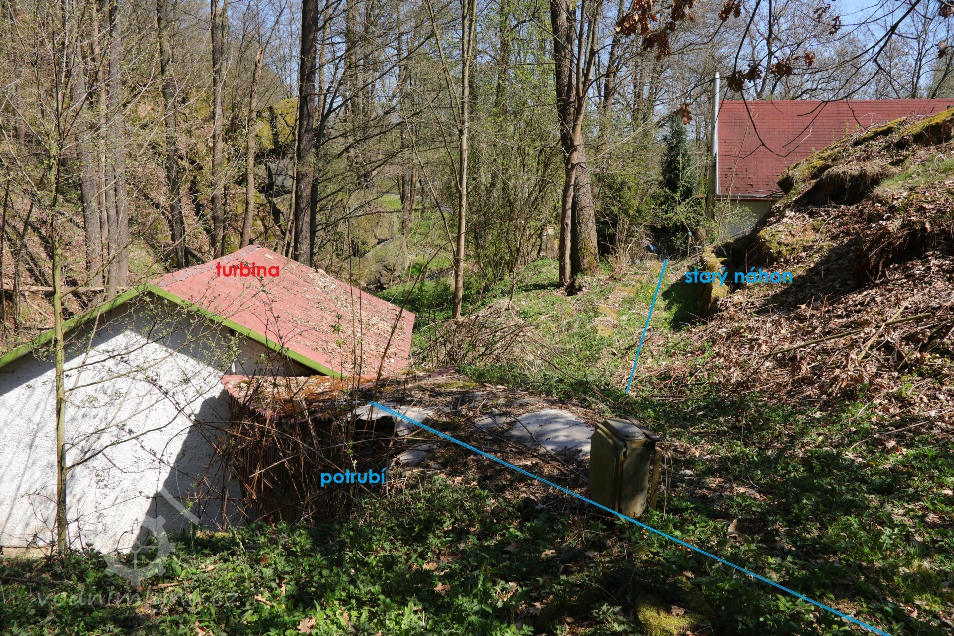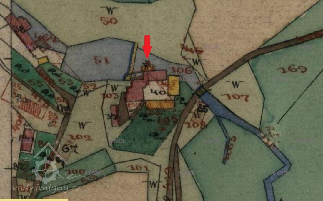 Popis1930: 1 kolo na svrchní vodu, hltnost 0,1 m3/s, spád 4 m, výkon 3,8 HP