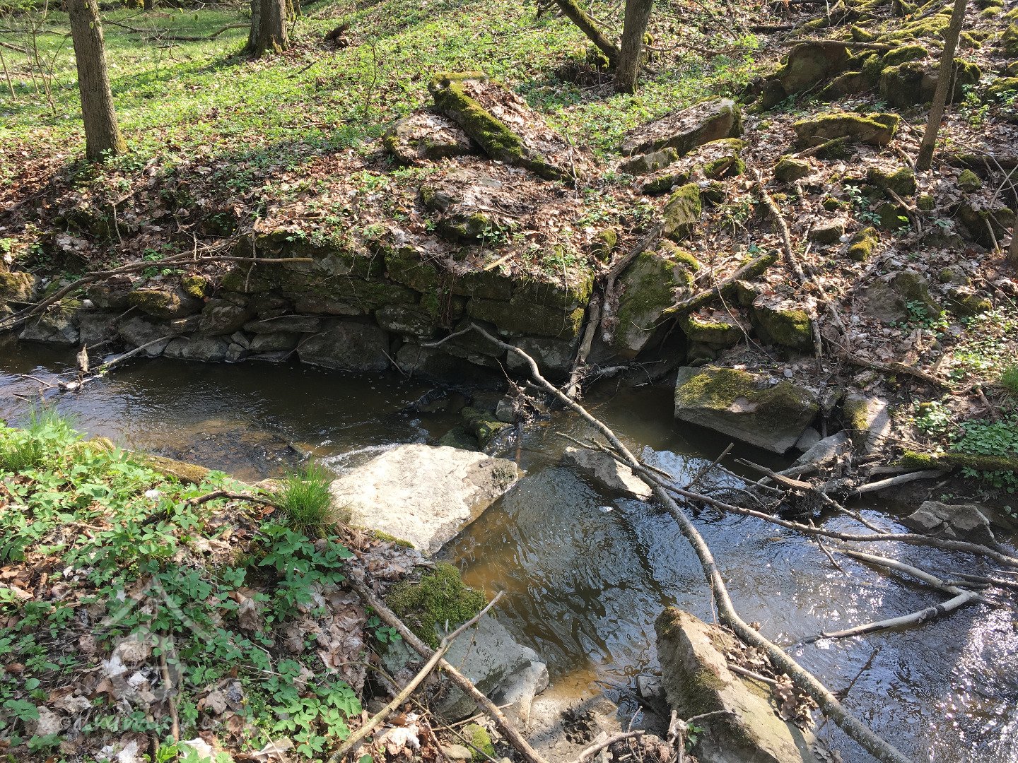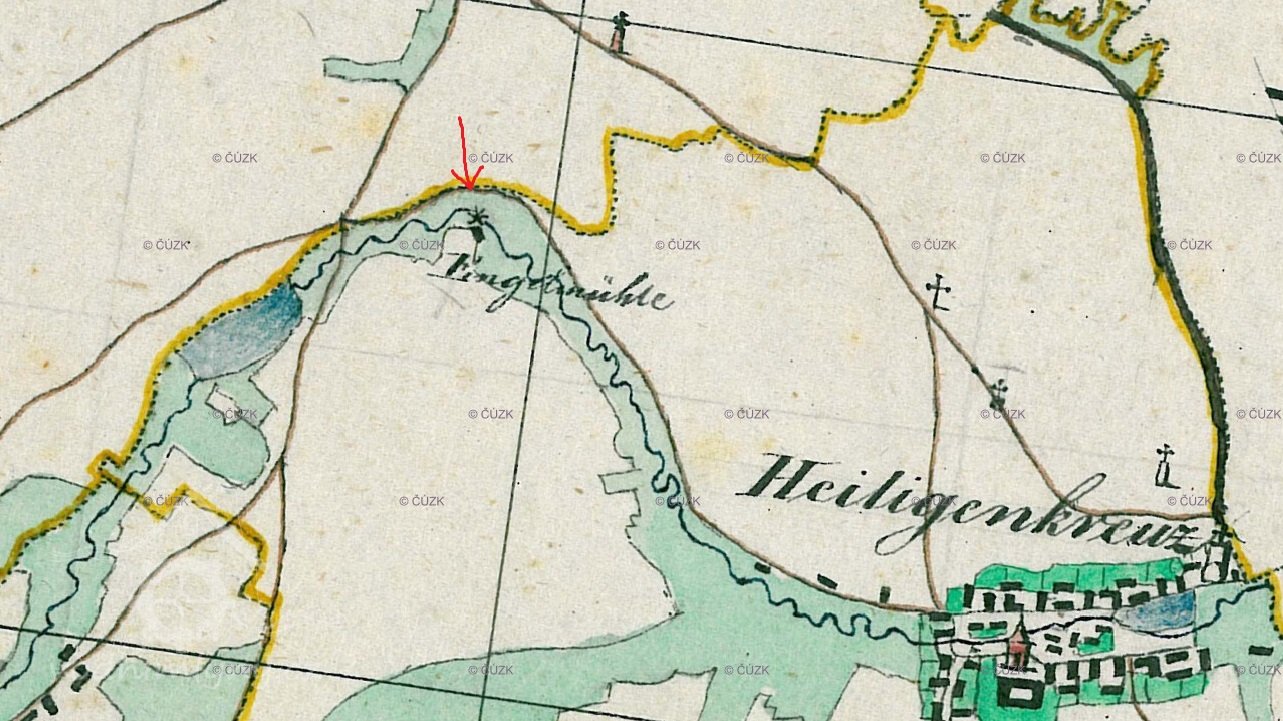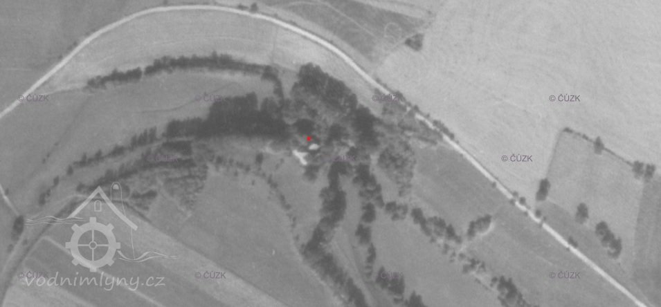 1838 – na otisku stabilního katastru je zakreslen náhon od rybníka, nespalná budova s jedním kolem, krátký odtokový kanál, za potokem ještě jedna spalná budova, na skice je vidět rozšíření budovy a změna trasy části náhonu před budovou, majitelem Franz Roith