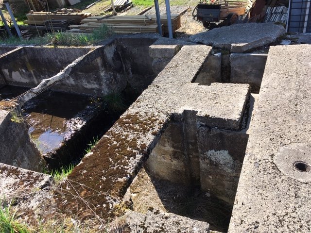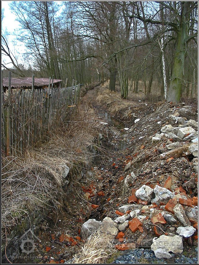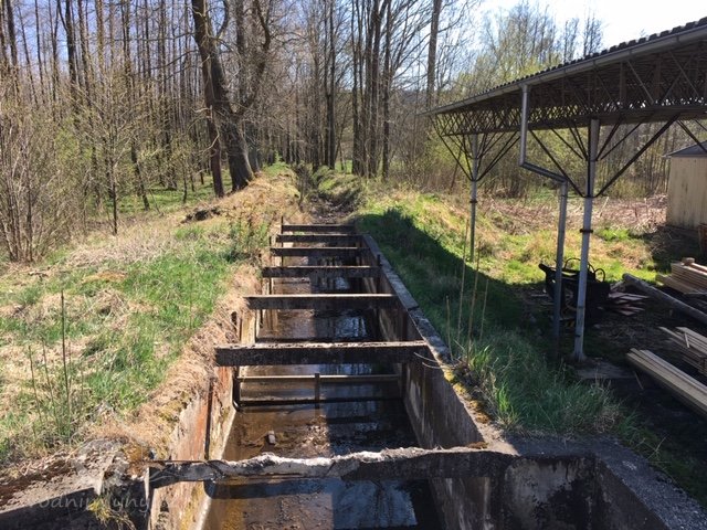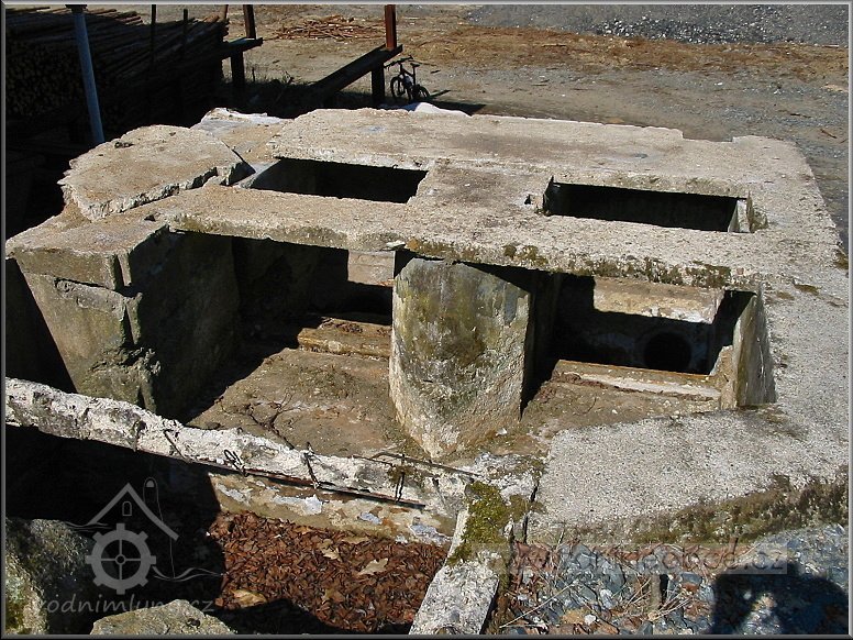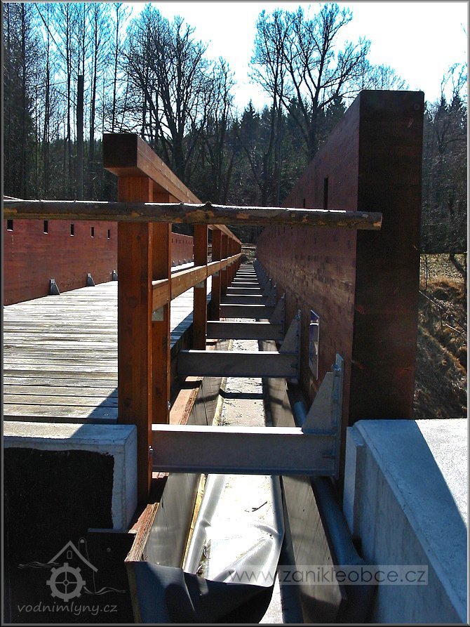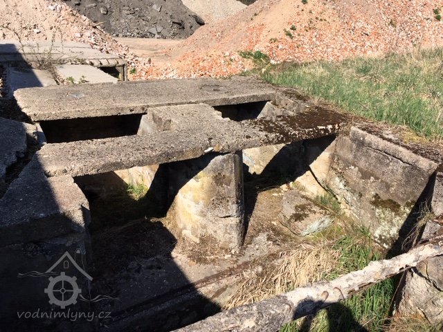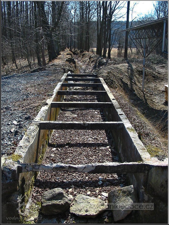 náhon z Teplé Bystřice - akvadukt přes železniční trať - náhon - betonové vantroky - turbínová kašna - odtokový kanál