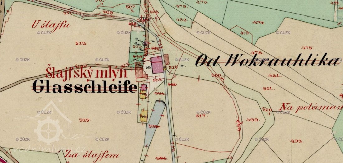 Šlajfský mlýn, Na Šlejfu, Glasschleife, Na Cihelně