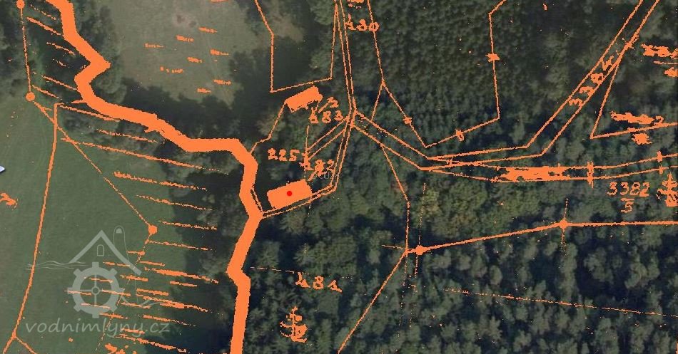Mlýn stával jižním směrem na okraji katastru u potoka Smolinky.