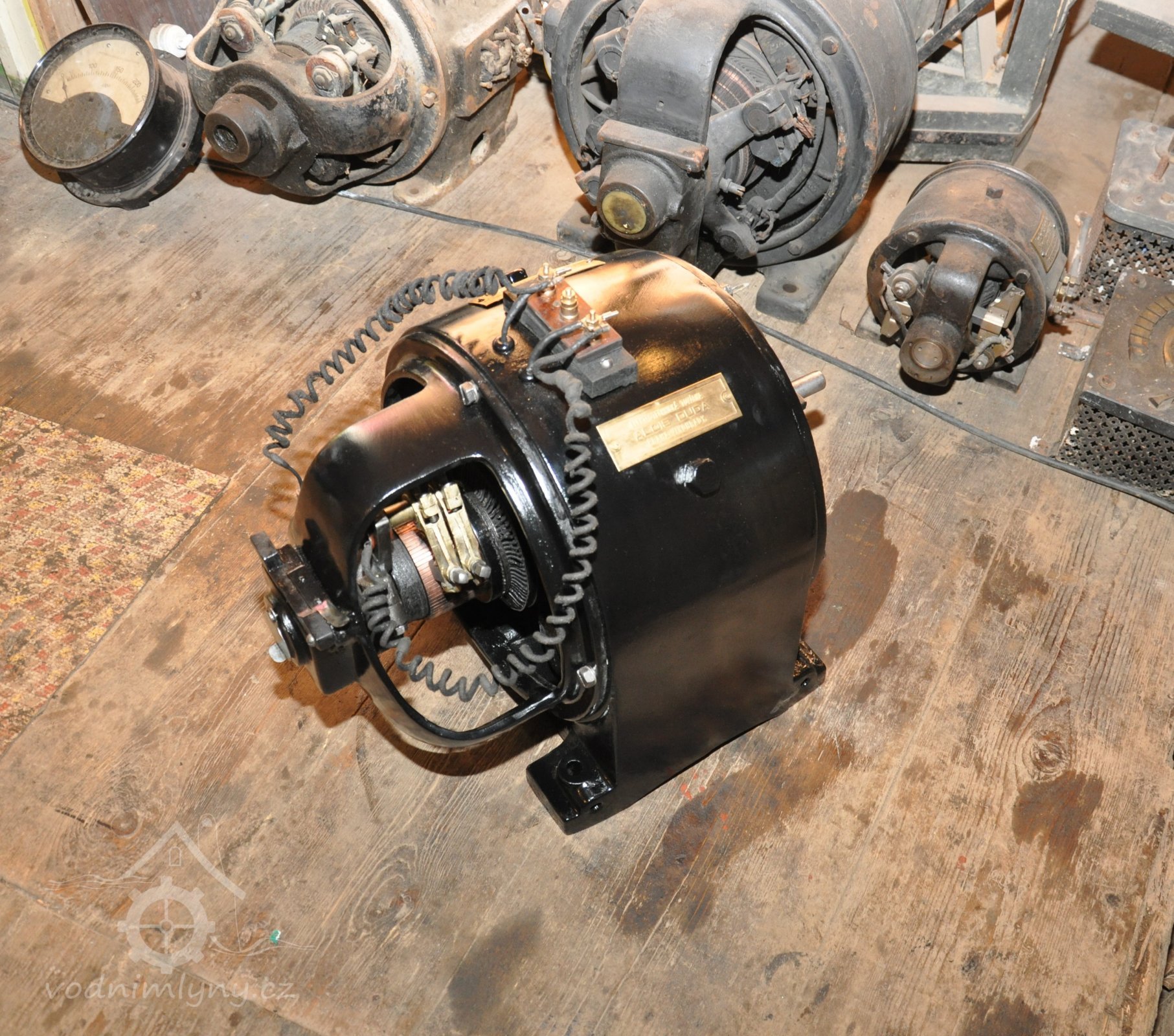 Dynamo Alois Duda - Praha Vinohrady, vyrobené kolem roku 1910, nyní vystaveno v technickém muzeu - mlýn Světce 13 (JH), 2018, © David Veverka - restaurátor strojů, (Prvky na obrázku: Generátor, dynamo, výroba elektrické energie)