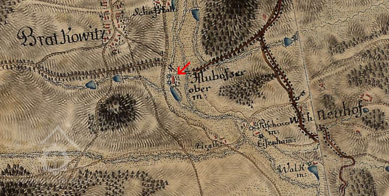 Nádherný mlýn nedaleko Bratkovic. Dochované technologické vybavení i architektonický ráz budov. V době průzkumu nebylo možné fotit mlýn v interiéru. (již zdokumentováno). Mlýn byl nedávno prodán a prochází rekonstrukcí (2013).