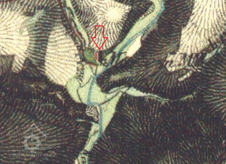 V roce 1877 byl u mlýna zasazen vodní cejch a vodní dílo bylo zapsáno do vodních knih. Jako majitel byl uváděn Franz Röhlich. Mlýn měl tehdy 4 vodní kola, 3 poháněla mlýnská složení a 1 pilu. Mlýnský náhon sloužil současně k zavlažování okolních luk.