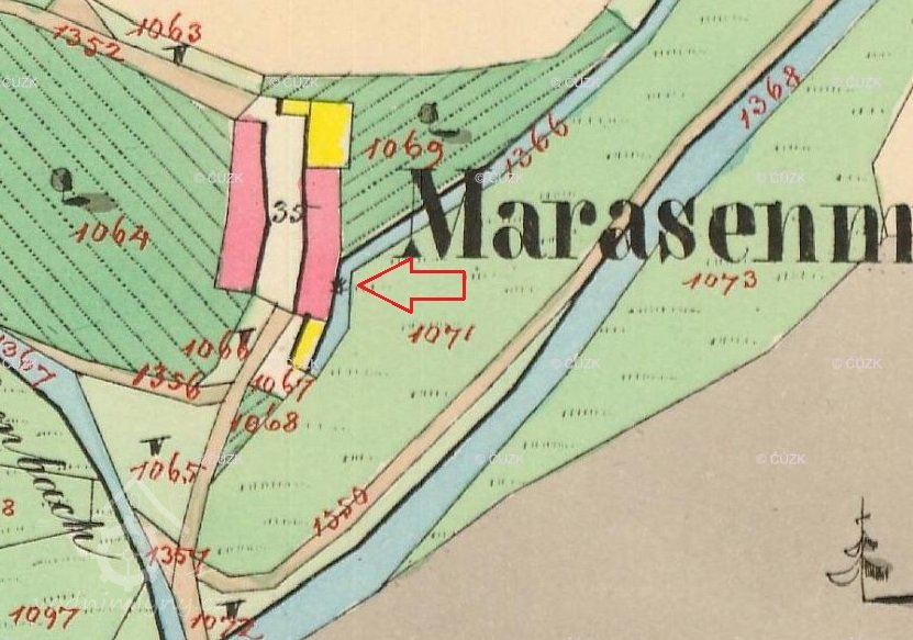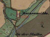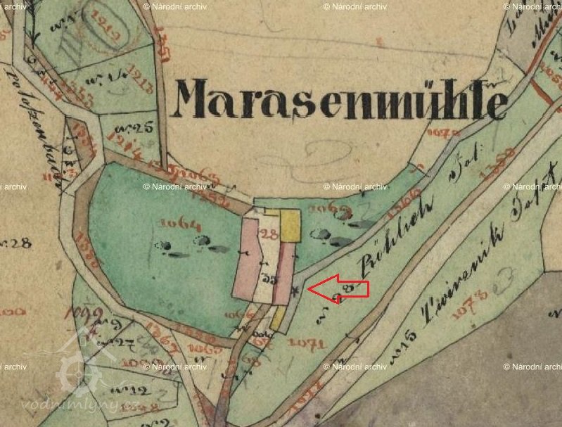 V soupise poddaných podle víry z roku 1651 je na tomto mlýně zapsána mlynářka Eva Marassin, vdova, stará 50 roků. S ní zde žili synové Geörg (27 let), Hans (25 let), Nicolaus (23 let), Mathieg (21 let) a dcera Eva (18 let).