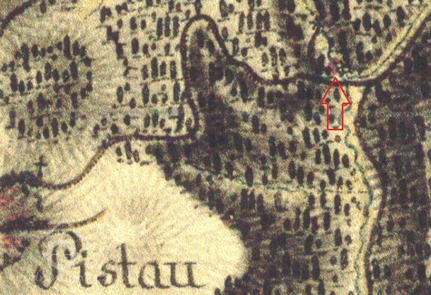 Mlýn stál v údolí Jilmového potoka nazývaném Buchtal necelý kilometr severovýchodně od obce Pístov, pod kterou katastrálně spadal. Na troskách mlýna byl vystavěn rekreační objekt.