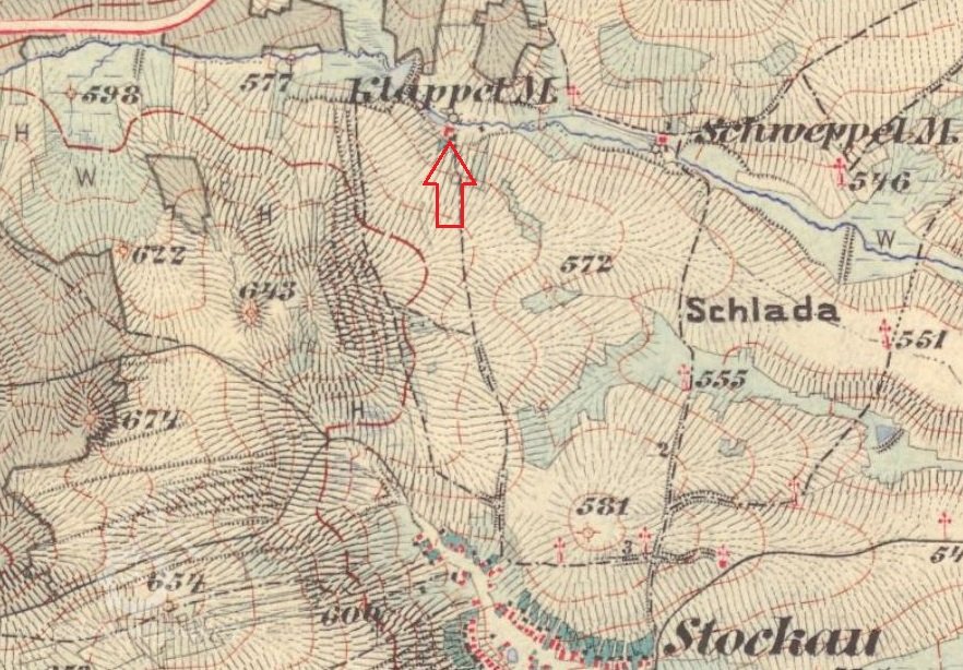 Mlýn stál necelé 2 km od pramene Slatinného potoka, byl nejvýše položeným mlýnem na tomto potoce. Katastrálně spadal pod obec Štokov.