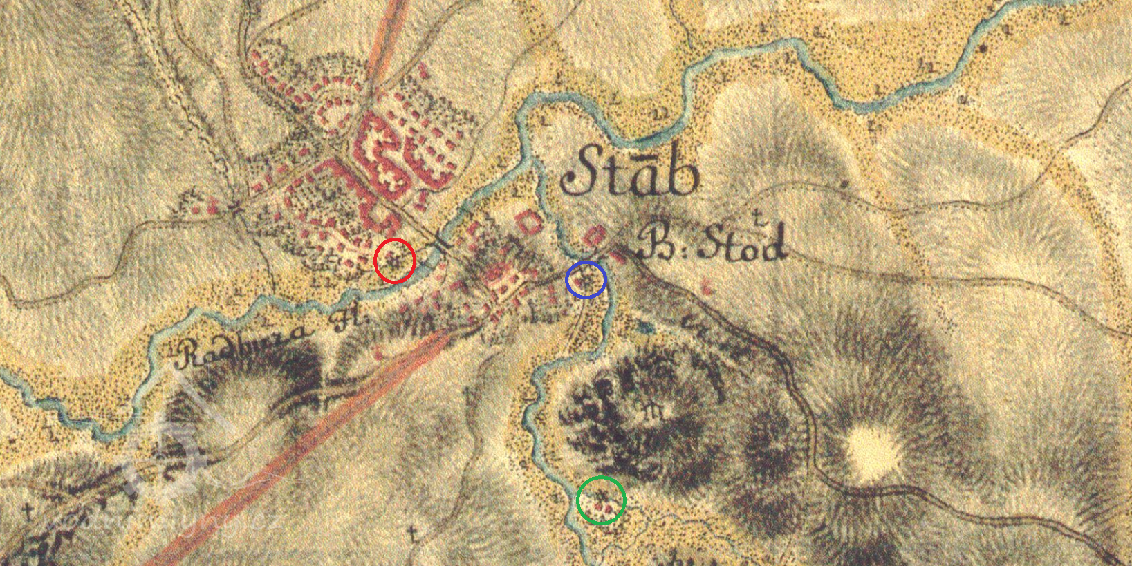 200 m východně od kostela sv. Maří Magdaleny ve Stodu