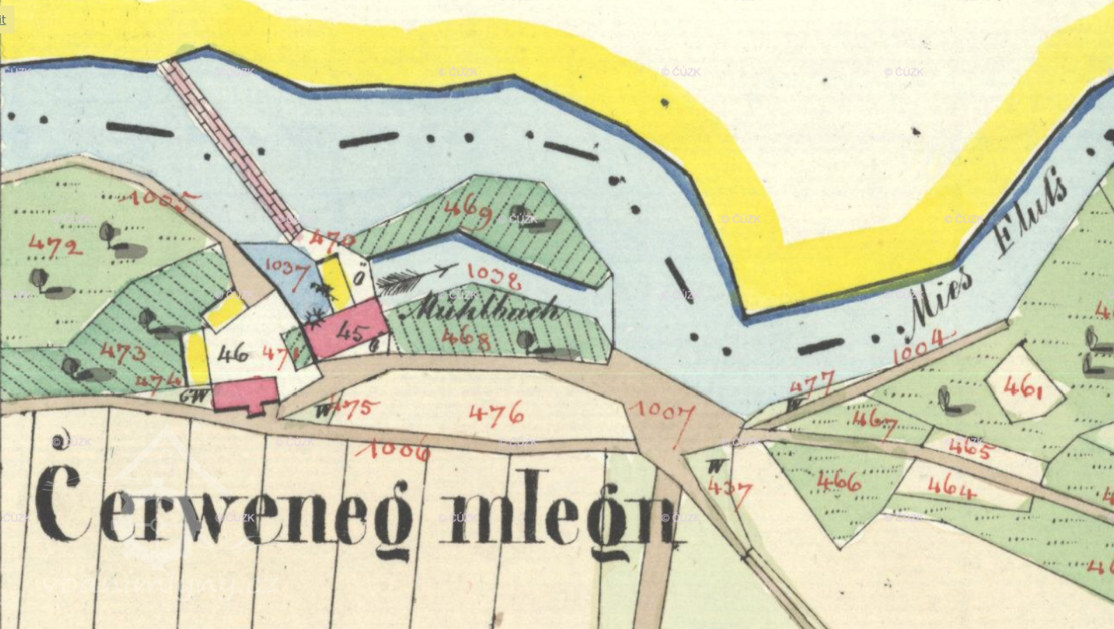 Popis1930 drátovna a elektrárna: 2 turbíny Girard, hltnost 1,528 m3/s a 1,479 m3/s, spád 2,56 m, výkon 43,5 HP