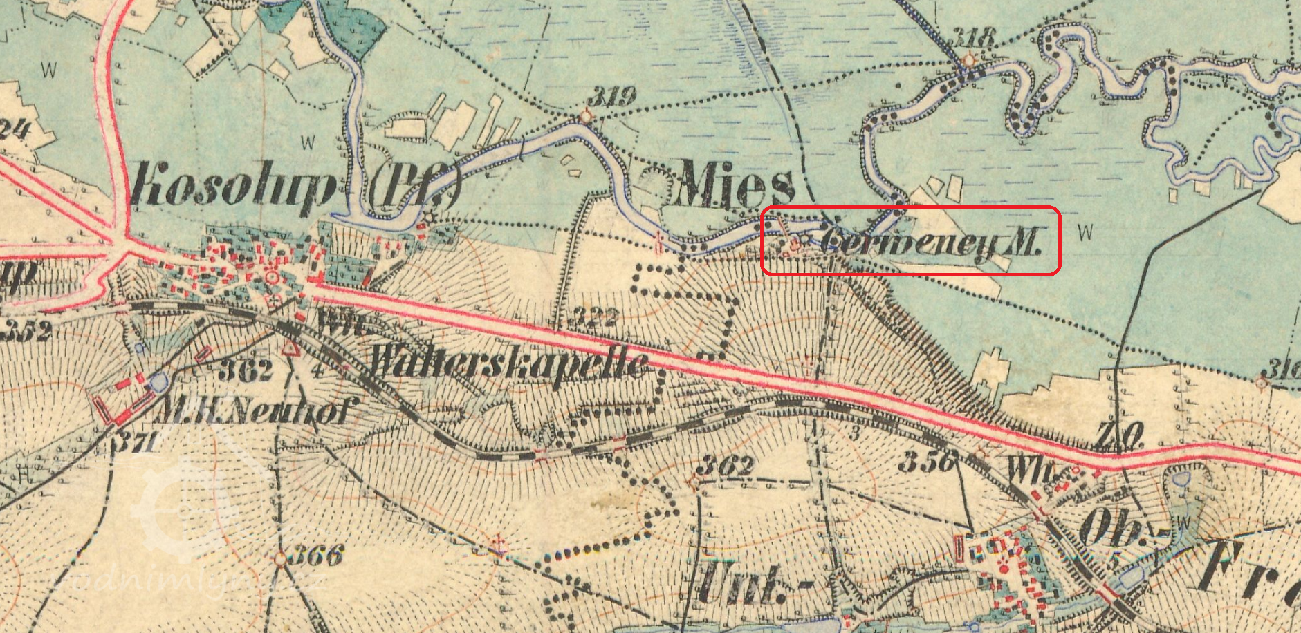1605 dcera Jiříka Malesického Barbora provdaná Štampachová na Malesicích platila daně z 60 poddaných a 5 mlýnských kol