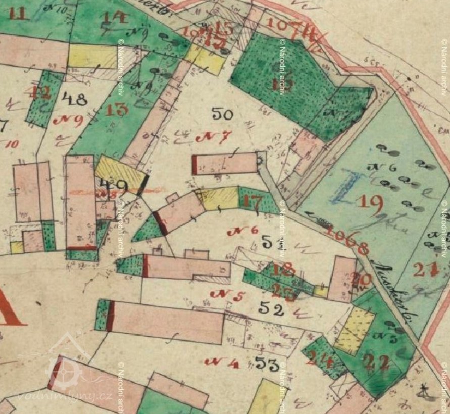 1951 - mlýn vyobrazen na topografické mapě systému S.
