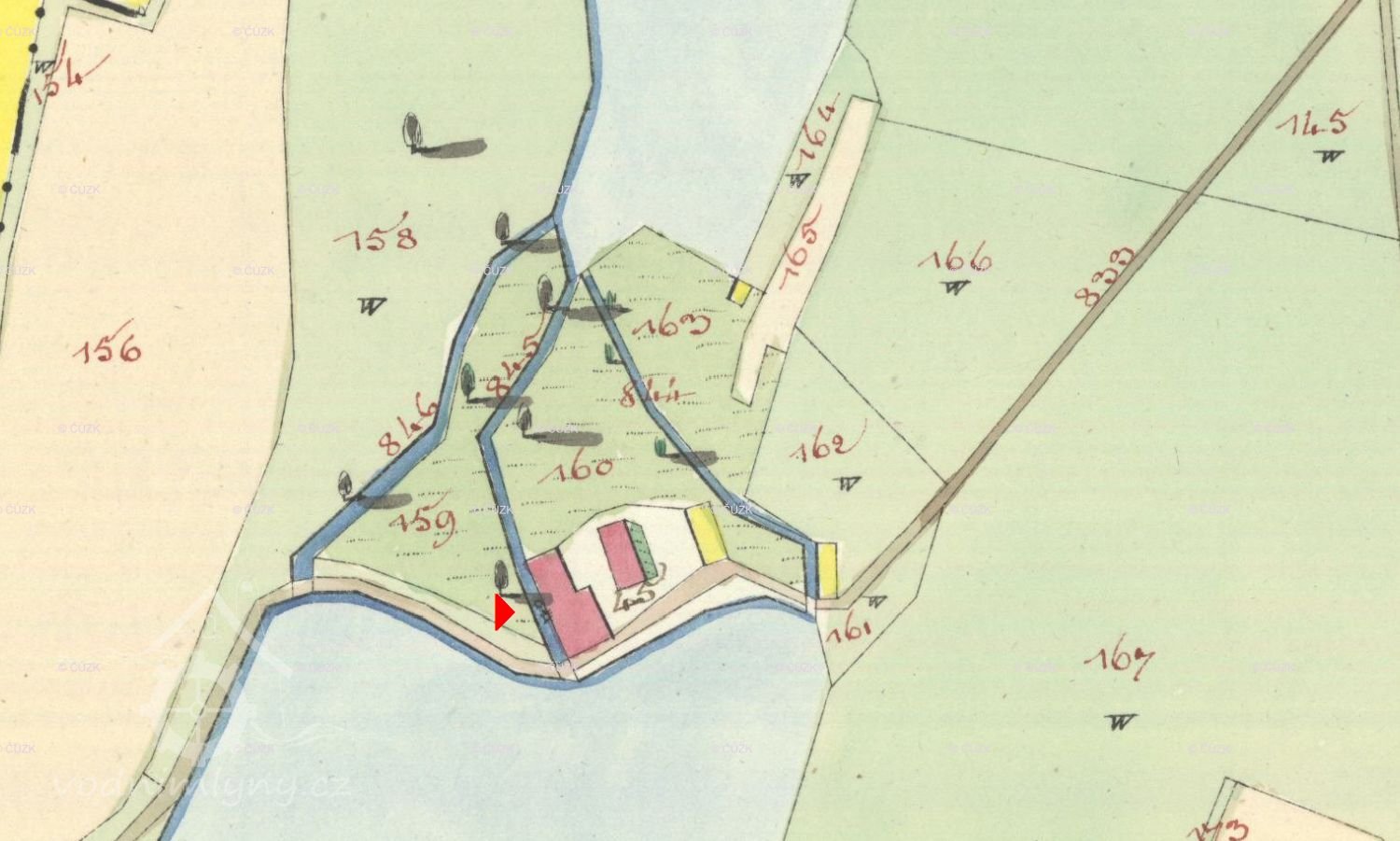Popis1930: 1 kolo na svrchní vodu, hltnost 0,14 m3/s, spád 2,8 m, výkon 4 HP