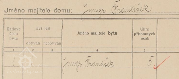 1921 ve sčítání uveden mlynářský p. František JUNGR