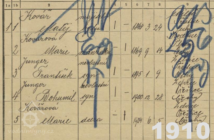 ve mlýně mlel Josef Jungr, nevlastní syn Matěje Kováře