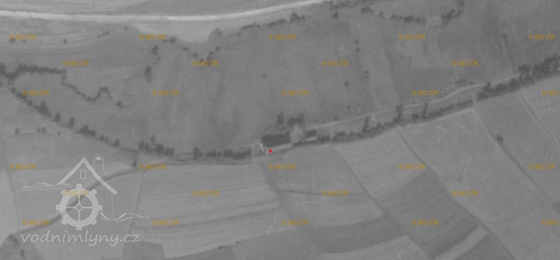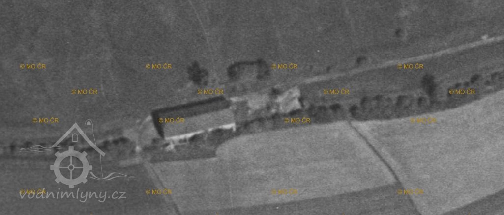 Na leteckých snímcích z let 1947 a 1949 ještě stojí.