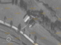 Letecký snímek z roku 1958 - pouze zbytky po zbořených stavbách.