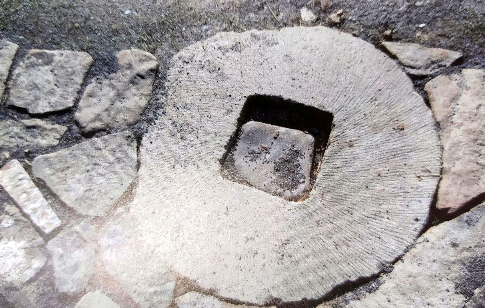 Mlecí kámen ve dlažbě, 2012, © Vodní mlýny na Novojičínsku