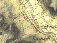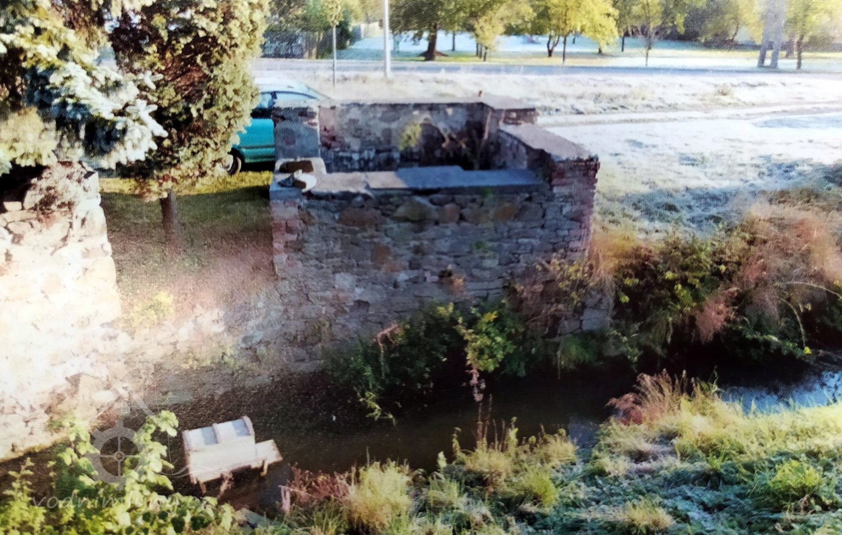 jeden ze sloupů mlýnské hranice a místo, kde bývalo dynamo, 2014, © David Veverka, (Prvky na obrázku: mlýnská hranice)
