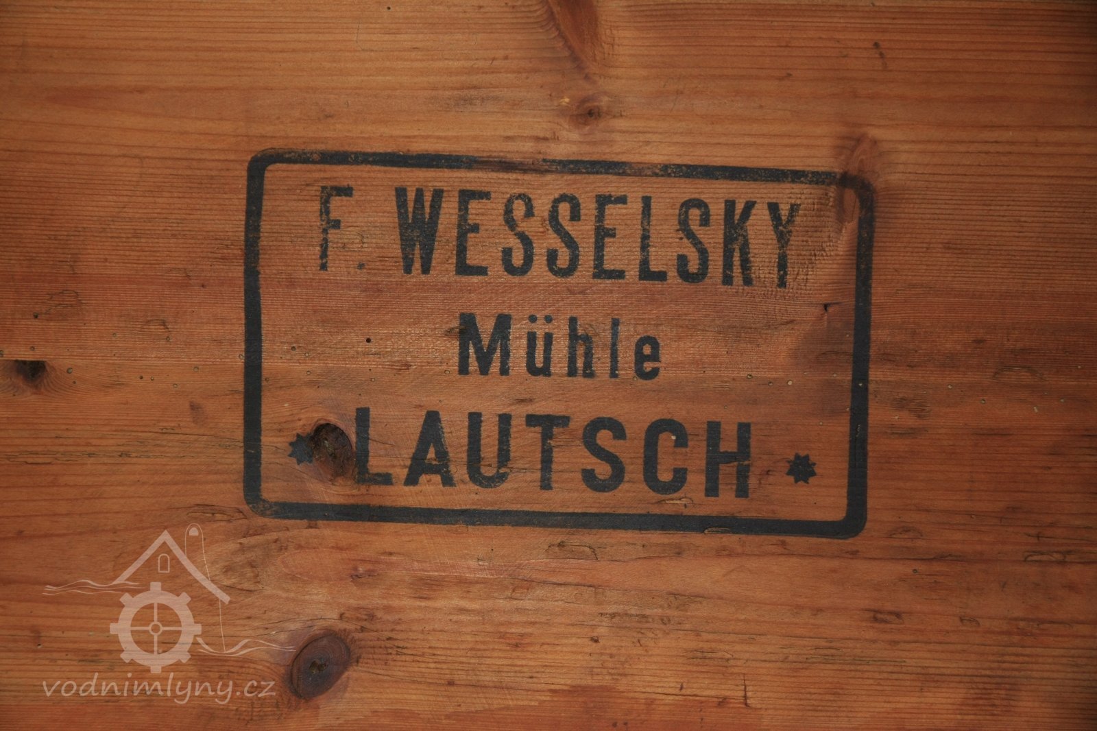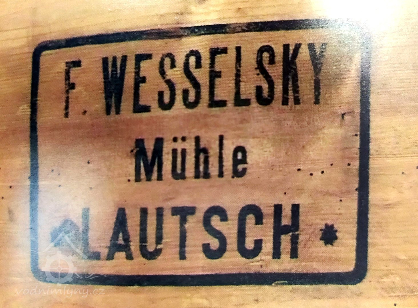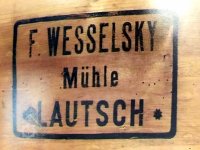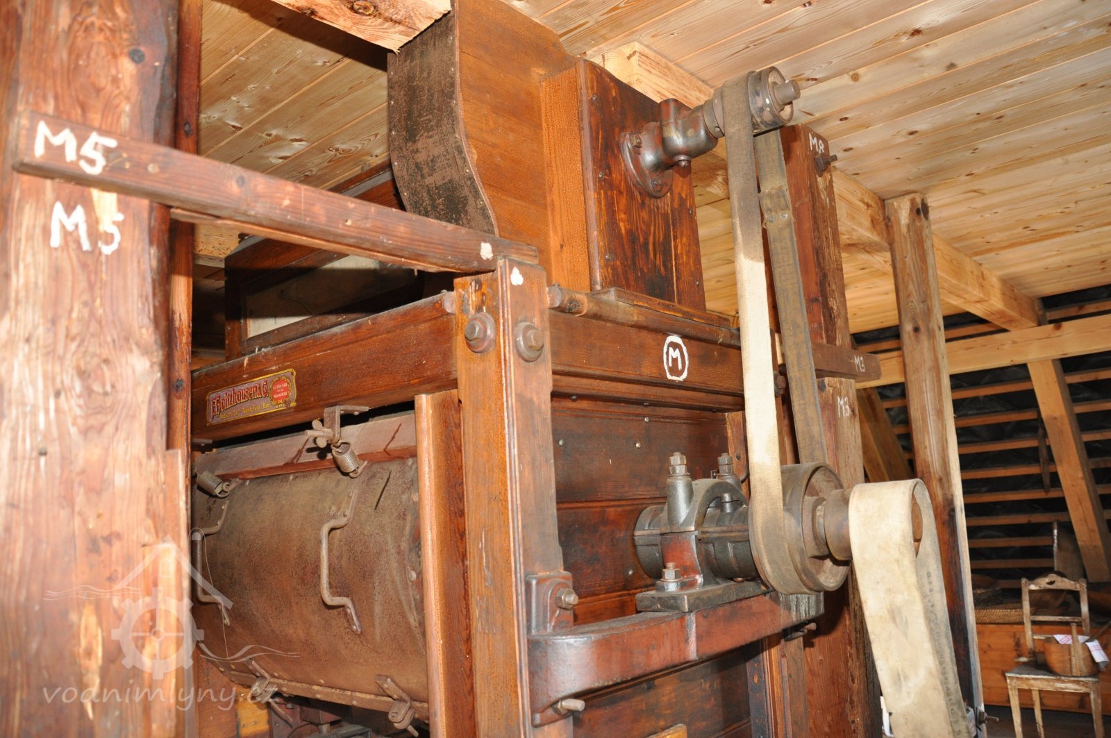 Štítek Hübner a Opitz, 2012, © Vodní mlýny na Novojičínsku, (Prvky na obrázku: značka výrobce na technologickém vybavení)