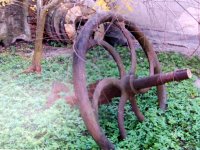 setrvačník z bývalé pily, 2014, © David Veverka, (Prvky na obrázku: transmise, řemenice, převody)