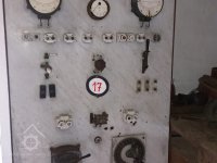 Transmise na 3. podlaží, 2013, © Šimek, (Prvky na obrázku: transmise, řemenice, převody, elektrická rozvodná deska)