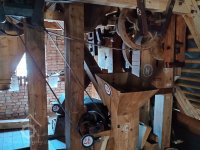 Transmise v podstřeší, 2013, © Šimek, (Prvky na obrázku: transmise, řemenice, převody)