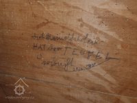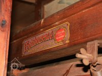 - loupačka průchodová, kombinovaná s kartáčovacím strojem, výrobce F. Holtzhausen a Co. Teplice, počátek 20. stol. - nápis výrobce, 2014, © David Veverka, (Prvky na obrázku: loupačka, značka výrobce na technologickém vybavení)