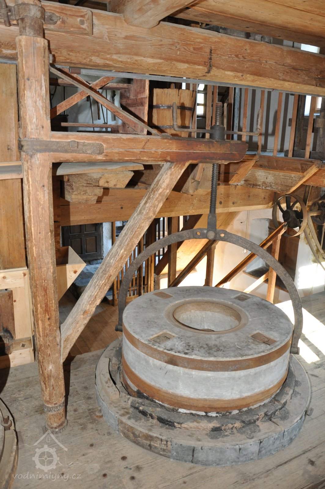 regulace (lehčení) mlecího kamenného složení, 2014, © David Veverka, (Prvky na obrázku: kamenné složení (šrotovací, mlecí))
