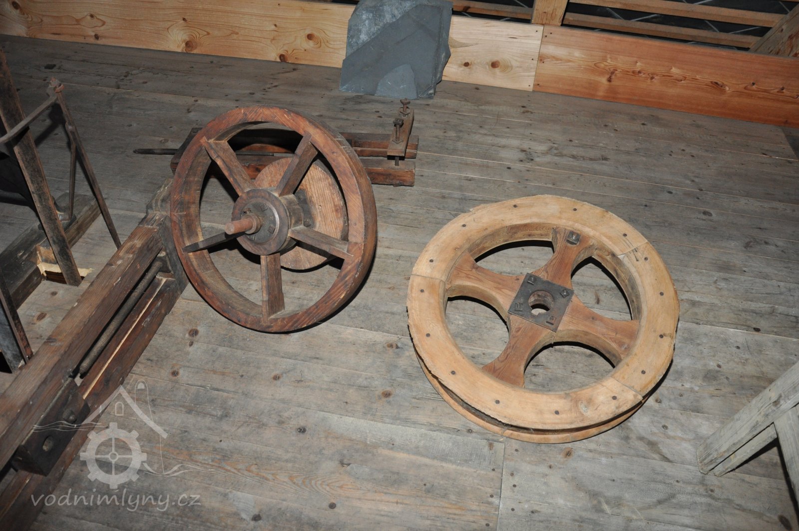 dřevěné řemenice, 2014, © David Veverka, (Prvky na obrázku: transmise, řemenice, převody)