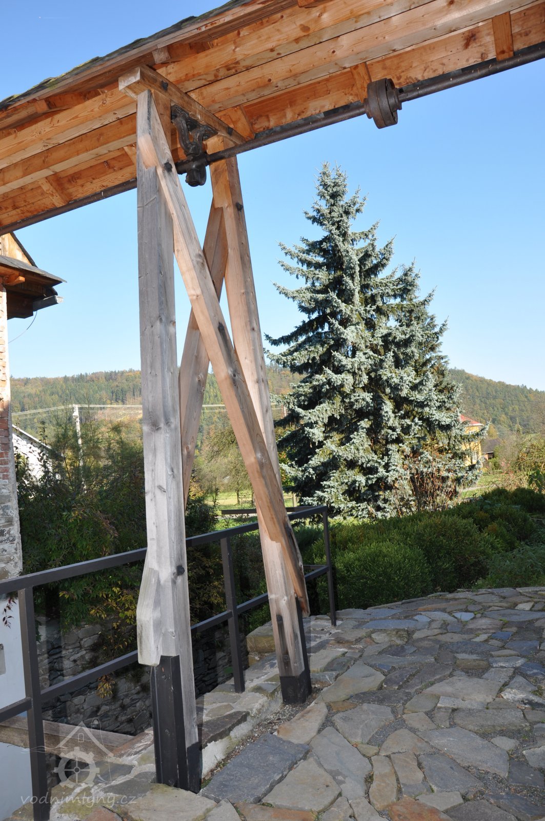 vodní kolo na vrchní vodu - pohled, 2014, © David Veverka, (Prvky na obrázku: Vodní kolo)