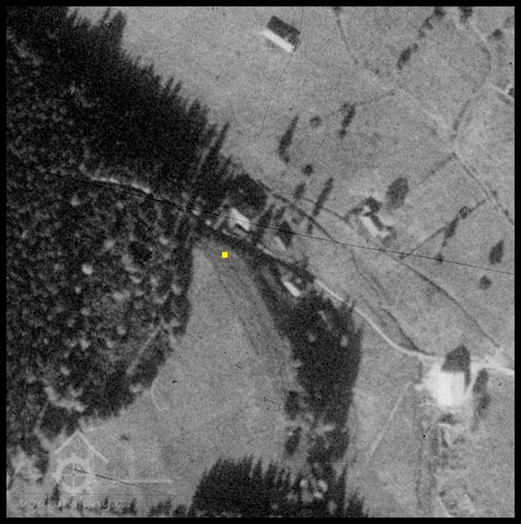 V roce 1951 budova mlýna stála (viz snímek leteckého mapováné).