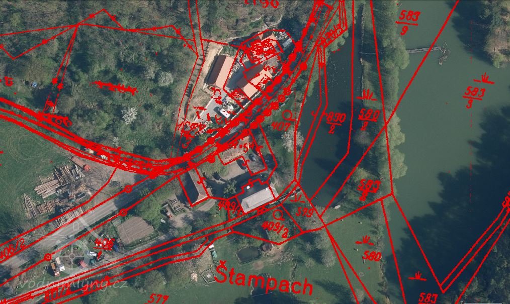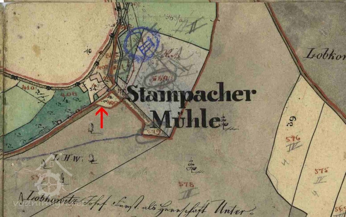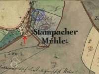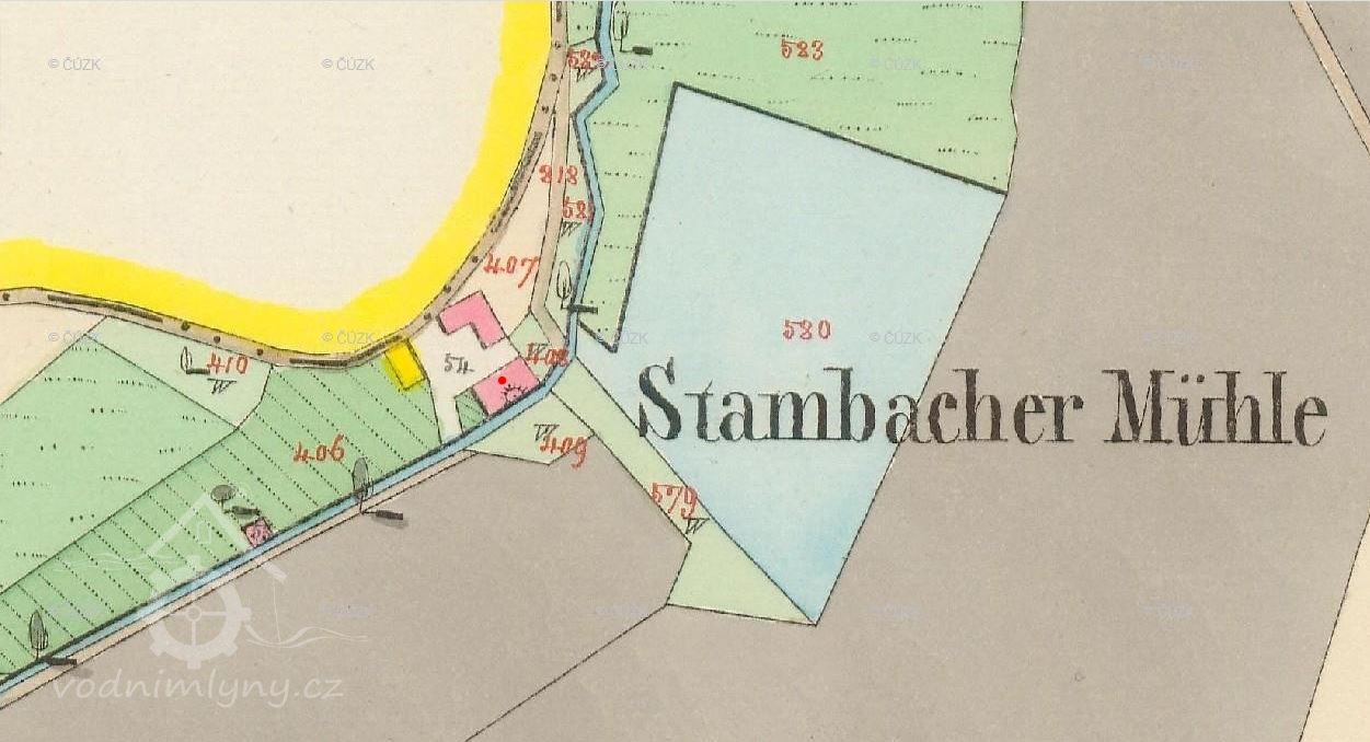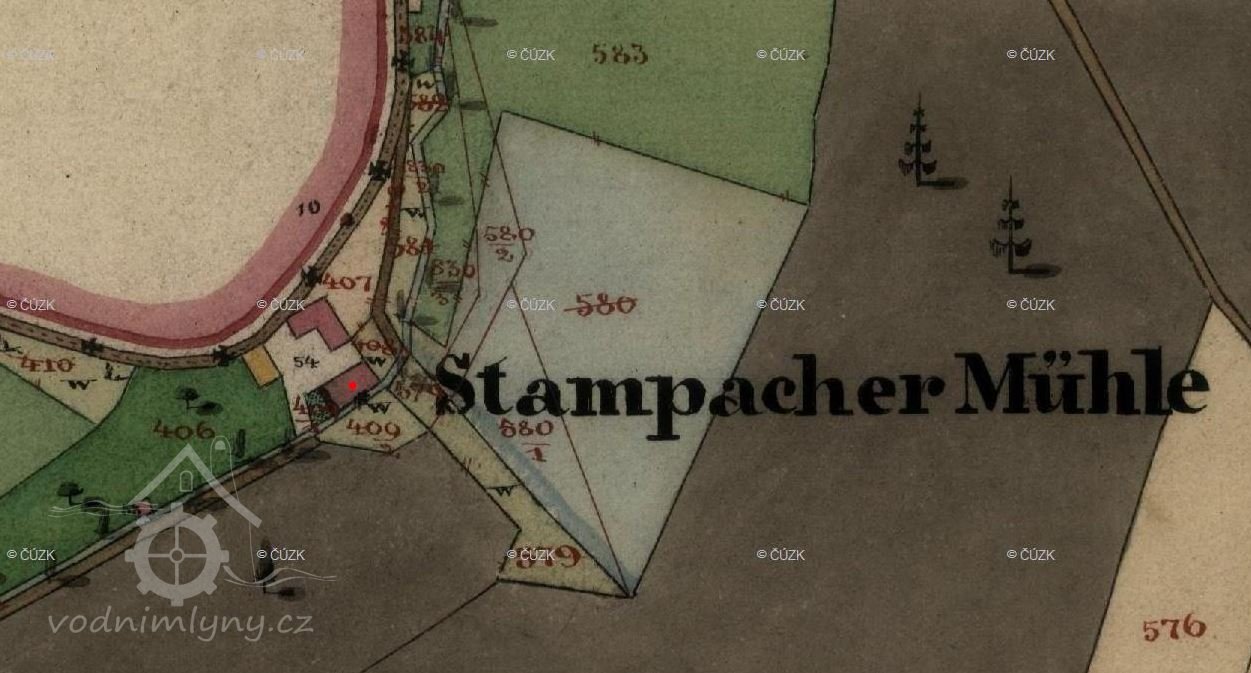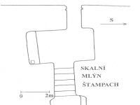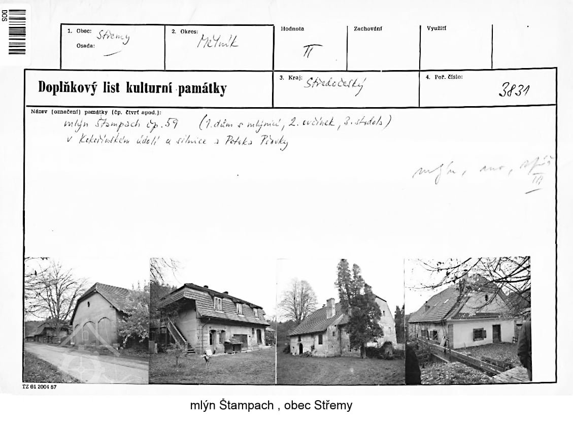 Třetí mlýn na Pšovce, který je dnes tradičně označen jako „skalní“, nese jméno Štampach. Leží na katastru obce Střemy, odkud strží sestupuje přístupová komunikace. V druhé polovině 16. století patřila obec do majetku rodu Štampachů ze Štampachu.