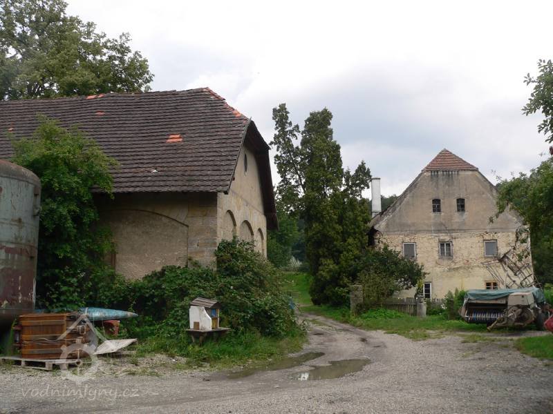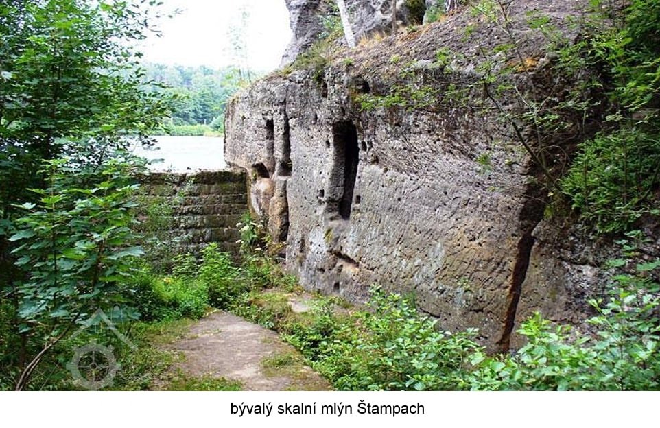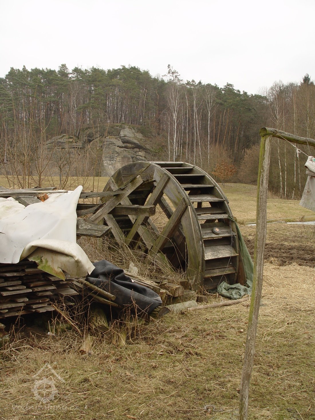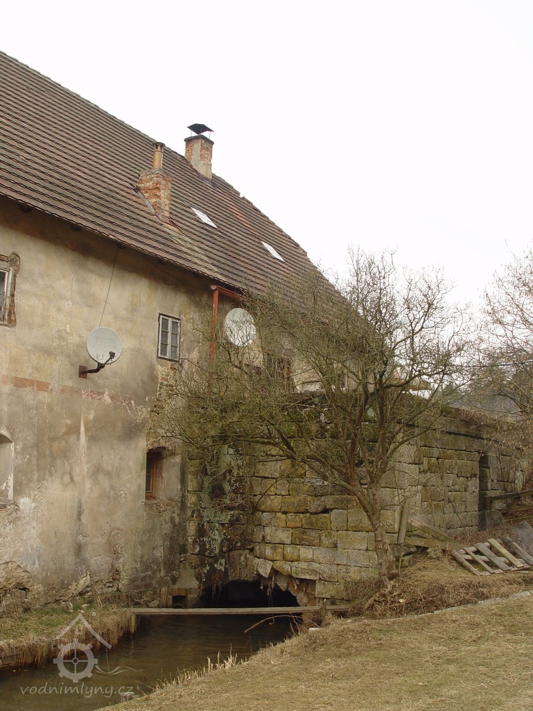 Zděný mlýn leží pod obnoveným rybníkem, jehož výpust má strouhu vysekanou ve skále. Na jejím dně je prosekané obdobné požírací koryto jako na Tuboži. Nad strouhou je vstup do dvou prostor, vysekaných v pískovcovém masivu. První je ve výškové úrovni vstupu, do druhé se sestupuje z první po sedmi schodech. Ve vstupu jsou patrné stopy po zárubních a uzavírání objektu. Jedná se o komoru a níže umístěný sklep, přístupné z protější strany strouhy po dřevěné lávce. Jejich zdánlivě neobvyklé umístění v situaci staveb mlýna je vzhledem k užitému materiálu právě typické, k zahloubení byla využita usedlosti nejbližší pískovcová skála. Způsob práce v lomové stěně i při vysekání objektu odkazuje do pokročilého novověku.